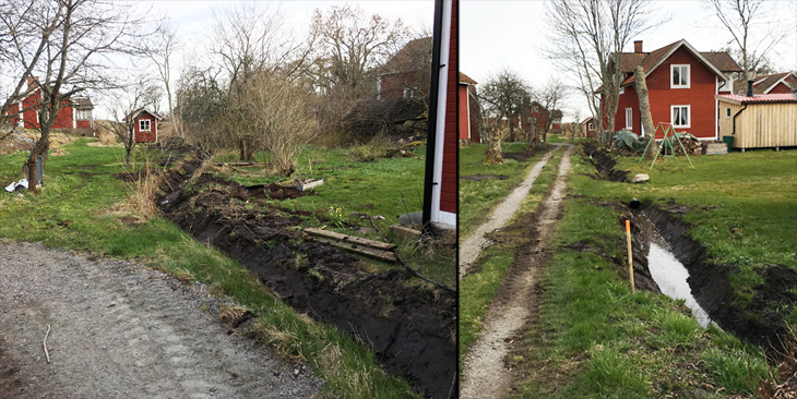 5 mars. Dikesgrävningen i byn har kommit igång.